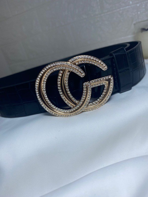 • Cinturón negro croco con hebilla CG strass.