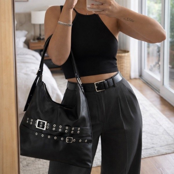 Su diseño con avíos y hebillas la vuelve canchera. Pensada para combinar estilo y funcionalidad en el día a día.