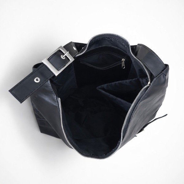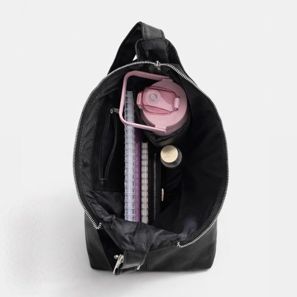Se destaca por sus compartimentos internos, bolsillos y compartimiento para botellas interior. Con forma #hobobag ideal para para la facu o el trabajo por su gran capacidad, apto A4, apuntes y notebook de 15,5”.