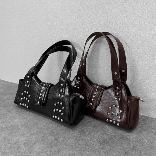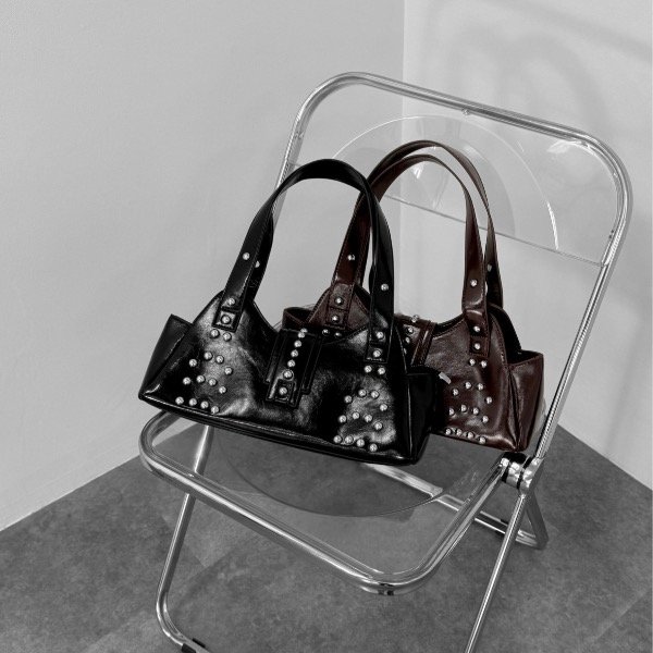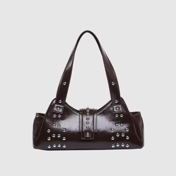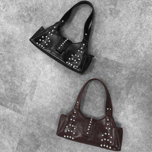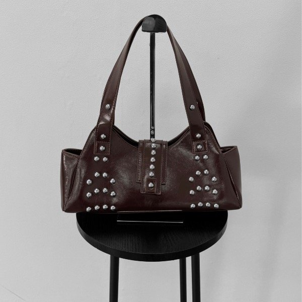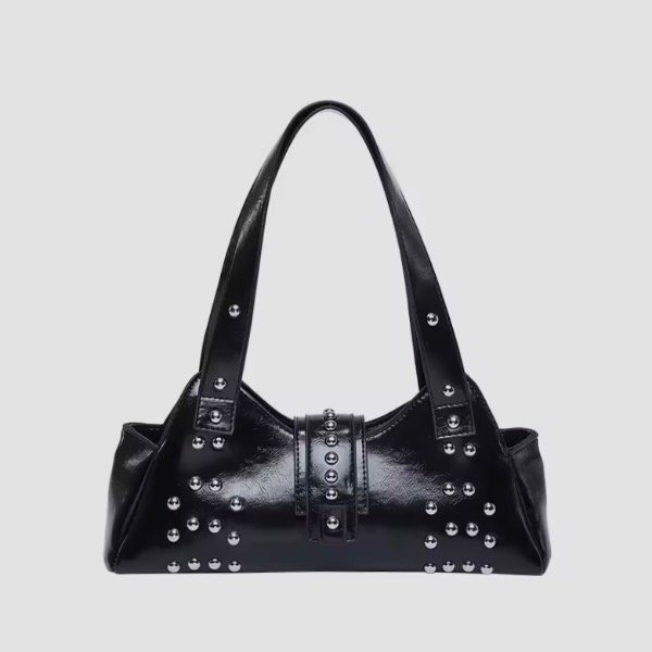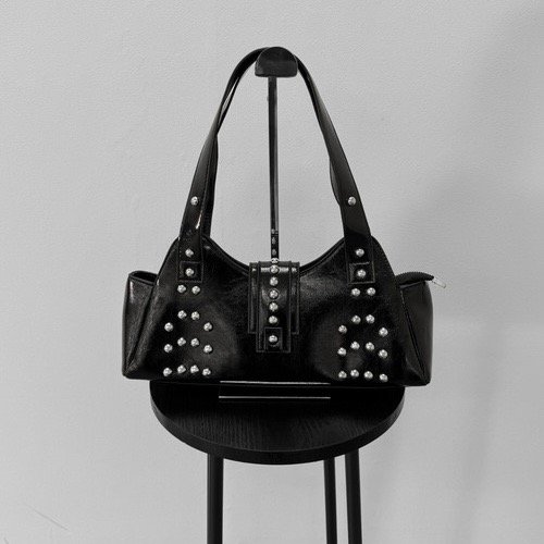 Su tamaño la hace perfecta para llevar lo esencial sin perder presencia. Las tachas, distribuidas con un diseño original y equilibrado, aportan ese detalle trendy que hoy marca la diferencia: un toque de rebeldía sutil que realza la cartera sin recargarla, ideal para elevar cualquier outfit desde el día hasta la noche.