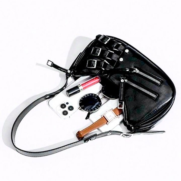 • Confeccionada en cuero vegano